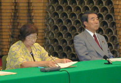 政府側から、坂口厚生労働大臣や泉国土交通副大臣の発言の後、八代組織委員長から、「経済状況は厳しいが、2002年の最終年フォーラムへの予算措置についてぜひともよろしくお願いしたい」と要望がなされ、日本障害者協議会の河端代表からも同様の要望がなされました(左写真/河端静子JD代表:左、八代英太衆議院議員:右)。