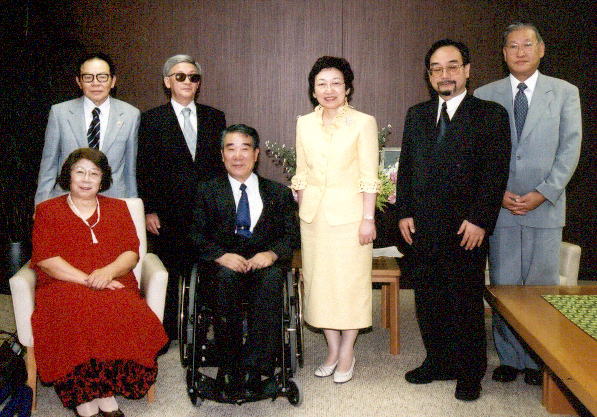▲「川口外相を囲んで記念撮影を行いました」の大きな写真